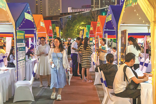 In July, Yinzhou district in Ningbo, Zhejiang province, launched the "young talent night market", which was actually a huge nighttime job fair held for young people. Fifty local enterprises, including ergonomic design company Loctek and trading enterprise China-Base Ningbo Group, offered more than 700 job openings at the market.
